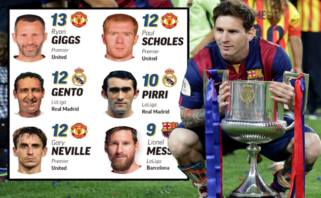 وبحسب ما نقلت صحيفة “إيلاف”، عن صحيفة “ماركا” الإسبانية ، فإن ميسي سيكون سادس لاعب ينجح في تحقيق إنجاز 10 ألقاب لنفس الدوري (الدوري الإسباني) مع نفس النادي (برشلونة) بعدما سبقه الى ذلك خمسة نجوم فقط .
