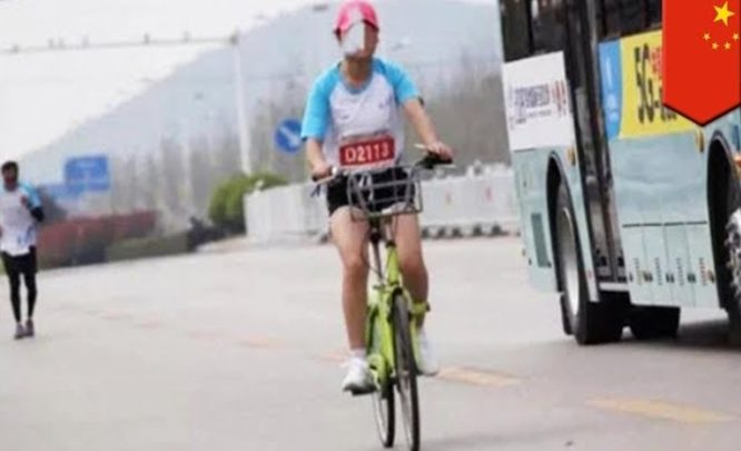 شهد سباق ماراثون دولي في مدينة جيانغسو الصينية حدثا نادرا، عندما قامت إحدى العداءات باستخدام دراجة هوائية أثناء السباق.