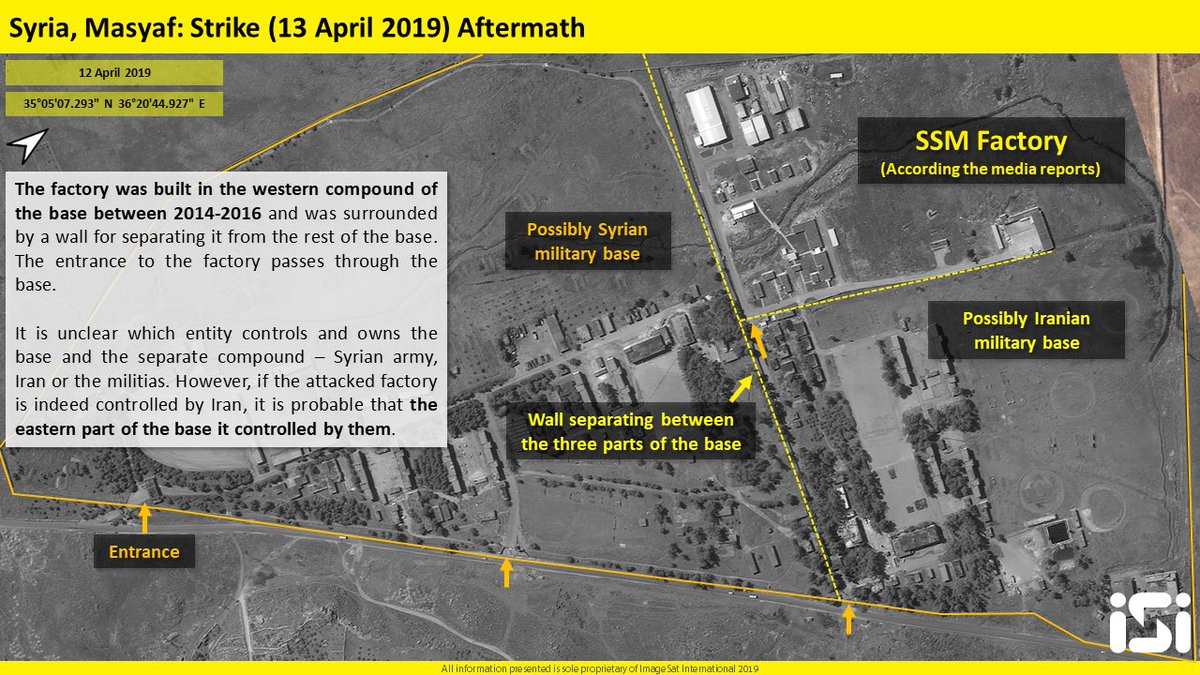 قالت وسائل إعلام إسرائيلية، إن صور أقمار صناعية من موقع الق. صف الإسرائيلي الأخير في سوريا أظهرت أنه “تم في الموقع بمدينة مصياف شمال غرب سوريا تم تدمير مبان كبيرة وحظيرة كبيرة، ووفق التقارير استخدمت المنشأة كمركز لتطوير الصواريخ متوسطة المدى وموقعا عسكريا”.