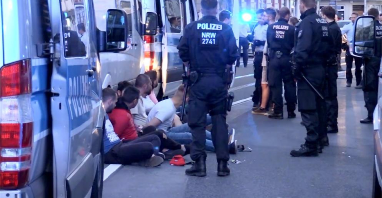 في مساء يوم الجمعة، أرادت دورية شرطة تفتيش سيارة بها أربعة ركاب في مدينة مولهايم، بولاية شمال الراين فيستفاليا، فتحول التفتيش الروتيني إلى حصار لعناصر الشرطة من قبل حوالي 50 رجلاً.