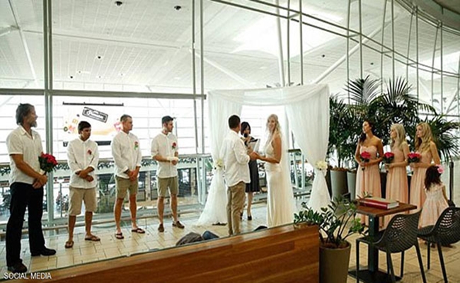 وأشار ممثل عن إدارة المطار إلى أن الحفل هو أول زواج في تاريخ المطار.