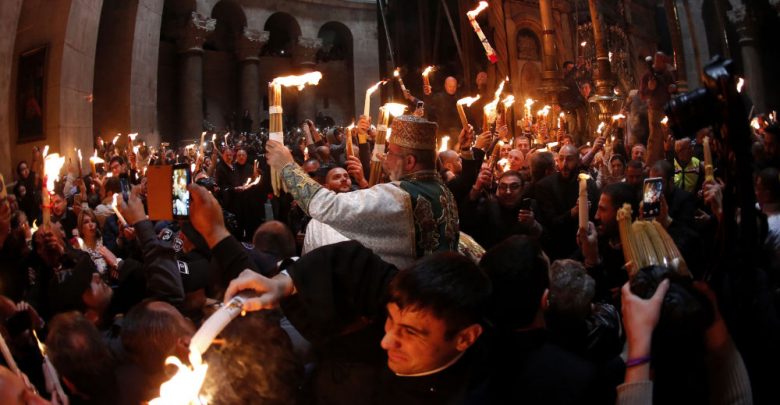 وكالة روسية : ” لحظة ظهور النور المقدس في كنيسة القيامة ” ( فيديو )