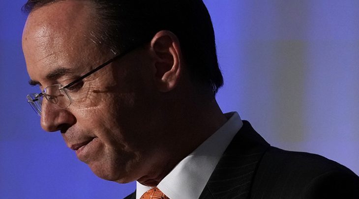 تقدم رود روزنشتاين، نائب وزير العدل الأمريكي، الإثنين، باستقالته؛ في خضم تداعيات عنيفة لمطالبة الوزير للخضوع لتحقيق بمجلس النواب حول تقرير المحقق الخاص روبرت مولر المتعلق بتدخل روسيا في الانتخابات الرئاسية الأخيرة.