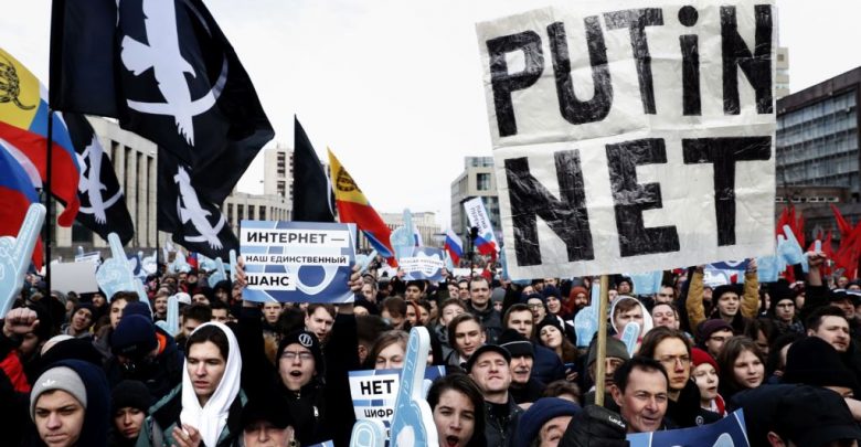 وتظاهر آلاف الأشخاص في روسيا مؤخراً ضدّ مشروع القانون هذا الذي يقول مراقبون إنّه يهدف إلى تقييد المعلومات والاتصالات عبر الإنترنت.