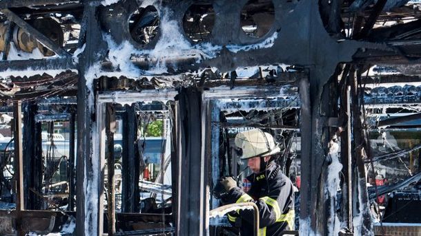 التهم حر. ـيق في مدينة هامبورغ، أربع حافلات بالكامل تقريبًا.