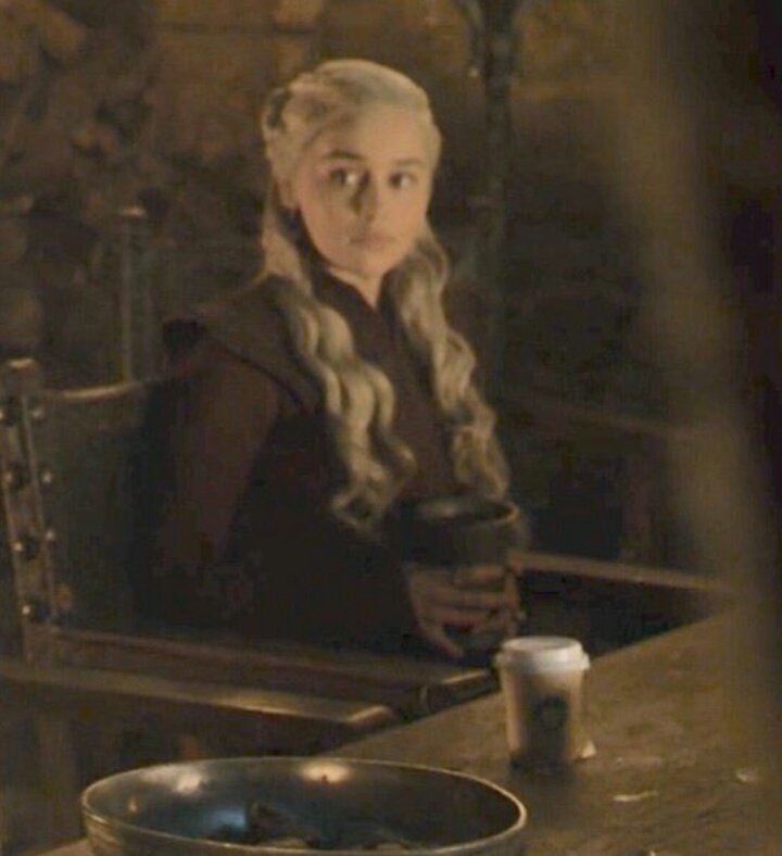 وبحسب صحيفة “القدس العربي”، ظهرت دنيرس تارجارين، وهي تجلس على الطاولة بعد أن فقدت أحد أصدقائها في المعركة، وهو “سير يورا مورمون”، وعلى مقربة منها كان فنجان القهوة وسط الأدوات من العصور الوسطى.