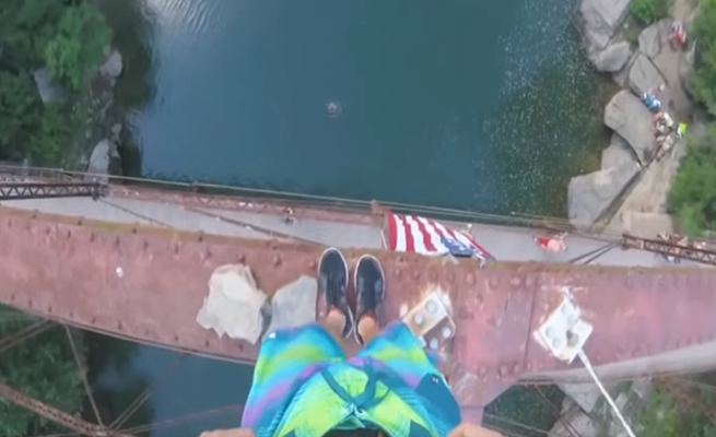 انتشر مقطع فيديو جديد يوثق مغامرة جريئة جدا، أقدم عليها ثلاثة مظليين في ولاية آيداهو الأمريكية، تمثلت بقفزهم من سقف شاحنة متحركة إلى قعر واد سحيق.