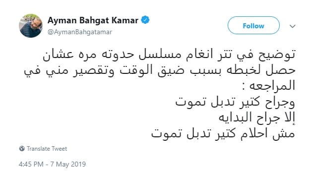 وكتب “قمر” أن الأغنية كُتبت: “جراح كتير تدبل تموت، إلا جراح البداية”، لكن الخطأ أدى إلى أن تُغنى “أحلام كتير تبدل تموت، إلا جراح البداية”.