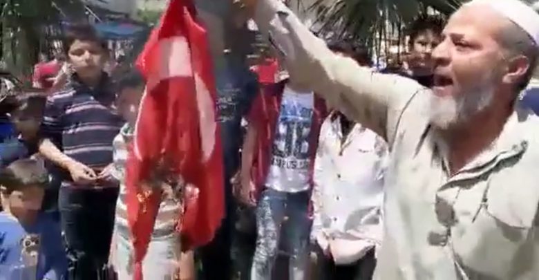 إدلب : مظاهرة تشهد إحر. اقاً للعلم التركي .. ” نحن يلي رفعناه و نحن منزلو ” ( فيديو )