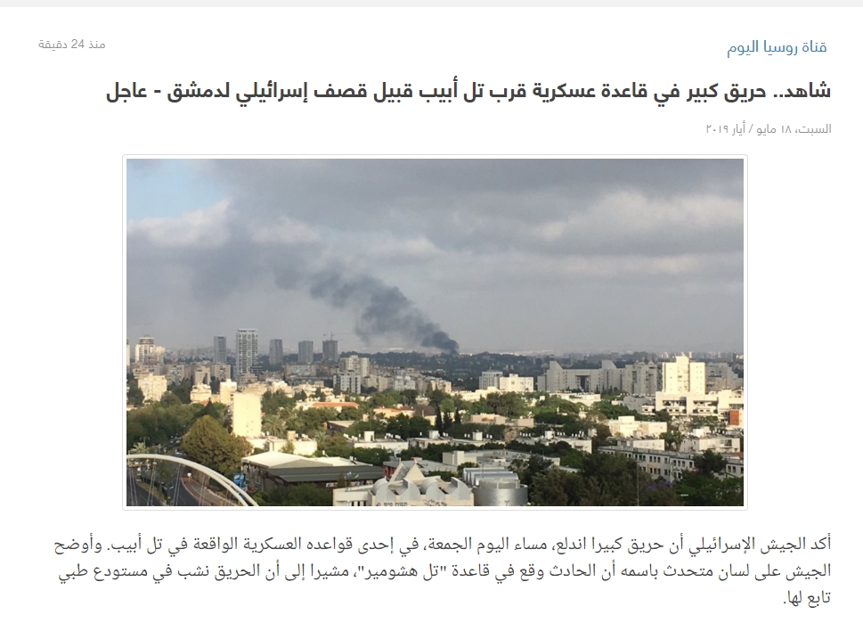 روسيا اليوم : ” حريق كبير في قاعدة عسكرية قرب تل أبيب قبيل قصف إسرائيلي لدمشق ” ( فيديو )