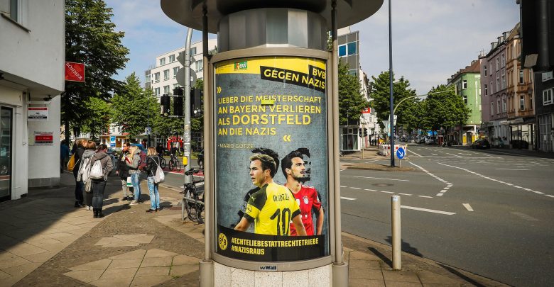 في مدينة دورتموند، بولاية شمال الراين فيستفاليا الألمانية، علق مجهولون ملصقات ضد النازيين، عليها صور نجوم فريق بروسيا دورتموند.