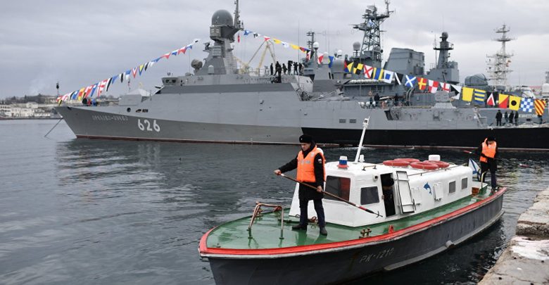 احتفلت أطقم الفرقاطة متعددة الأغراض وأحدث سفينة صاروخية صغيرة بيوم أسطول البحر الأسود الروسي في القاعدة السورية، التي سلمت لروسيا للاستخدام مجانًا لمدة 49 عامًا.