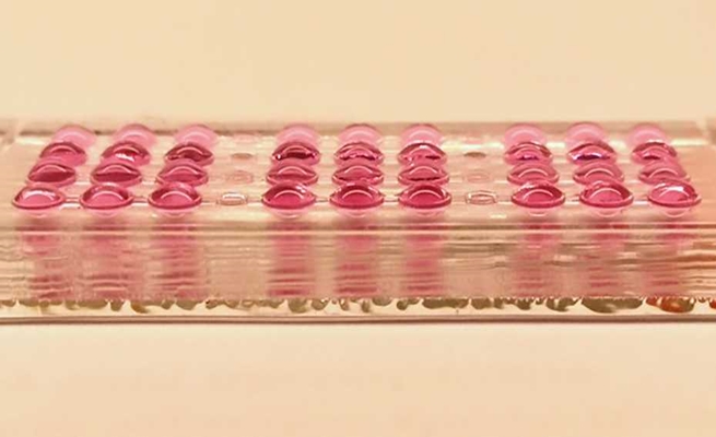 وتتألف هذه الشريحة من أنسجة كروية مجهرية تحتوى على الخلايا الكبدية البشرية والخلايا الجنينية.
