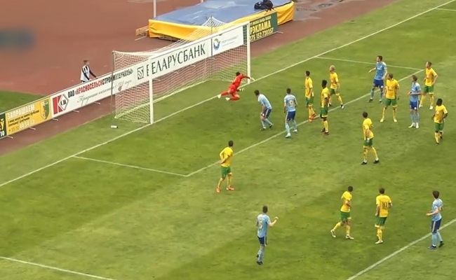 لاعب بيلاروسي يحرز هدف رائع بعد ضربة ركنية ( فيديو )