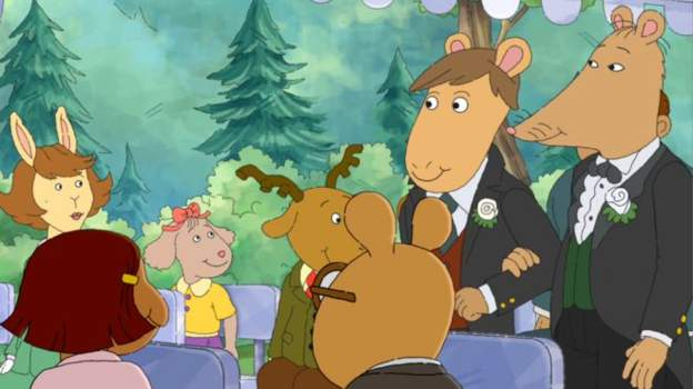 وتتضمن الحلقة الأولى من الجزء 22 من مسلسل الرسوم المتحركة “أرثر” مشاهد لزفاف البطل الرئيسي وشريكه.