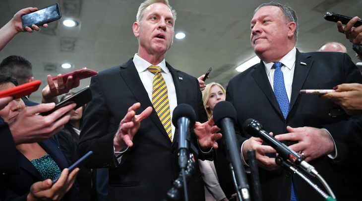 وقدم وزير الخارجية مايك بومبيو ورئيس هيئة الأركان المشتركة الجنرال جوزيف دانفورد والقائم بأعمال وزير الدفاع باتريك شاناهان الإفادة للنواب، ومن بينهم رفاق ترامب الجمهوريون وكذلك ديمقراطيون، الذين يطالبون منذ أسابيع بمزيد من المعلومات بشأن تصاعد التوتر مع إيران.