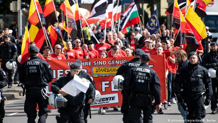 شارك نحو 800 شخص في مدينة دورتموند غرب ألمانيا السبت في مظاهرة احتجاجا على مسيرة لليمينيين المتطرفين.
