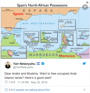 دعا يائير نتنياهو، نجل رئيس الوزراء الإسرائيلي العرب والمسلمين، إلى البدء بمناطق محددة ألحق خارطة لها إذا عزموا على “تحرير الأراضي العربية والإسلامية المحتلة”.