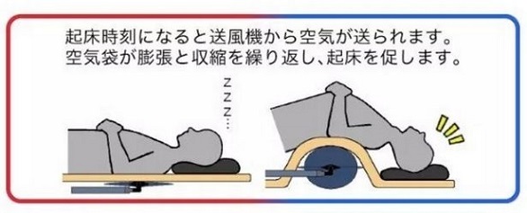 ويحمل الجهاز الجديد اسم “جهاز الاستيقاظ في الوقت المناسب” ويوضع تحت مرتبة السرير، لينتفخ عند موعد الاستيقاظ، ما يؤدي إلى ثني العمود الفقري، ما يمنع النائم من مواصلة النوم.