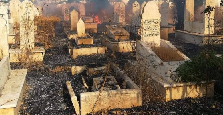 ونشرت صفحات وشبكات إخبارية موالية صوراً أخرى مشابهة لما يحصل في القلعة، في مقبرة بحلب، وعلقت بالقول: “اسهل طريقة لازالة الاعشاب اليابسة هو حرقها وبعدا بصير هيك المنظر”.