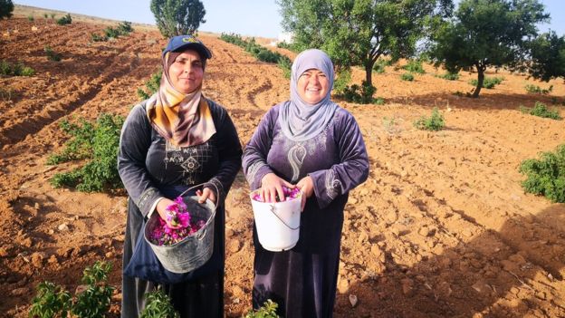 “قريتنا تمتلك ثروة لا تقدر بثمن، ويجب أن تكون هذه الوردة سفيرتنا نحو العالم”، كما قال لي وأنا أغادر القرية في طريقي إلى دمشق. (BBC)