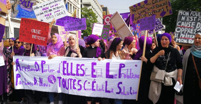 ومن بين ممن شاركوا فيه مجموعة كبيرة من النساء المسلمات، ومن ضمن ما هتفهن به في التظاهرة، عباراتي “الحجاب أم لا – خياري!” و”لا تحررنا، سنفعل ذلك بأنفسنا!”.