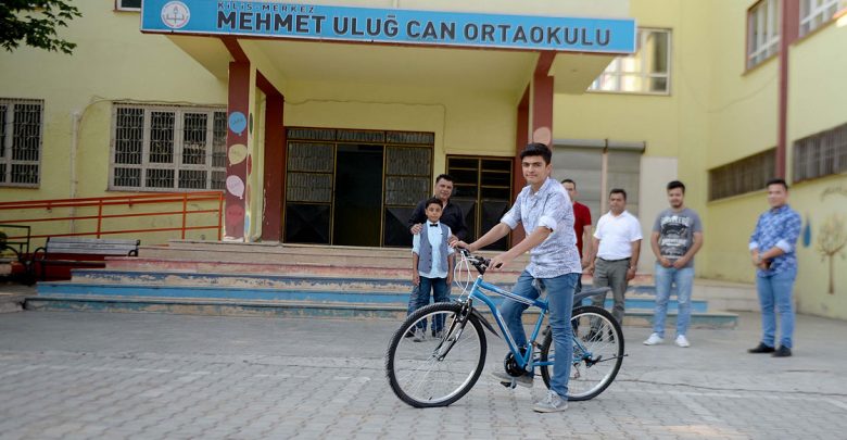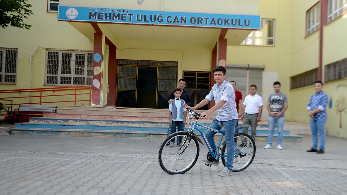 وحصل الطالب السوري على دراجة هوائية قدمها له مدير مدرسته كهدية.