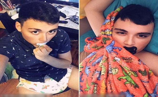 رغم أن ديليان بليك، البالغ من العمر 21 عاما، ويعيش في أوهايو الأمريكية، يعمل مساعد تدريس بمدرسة ثانوية، فإنه مازال حريصا على استخدام الحفاضات وتناول المصاص، ووضع سكاتة الأطفال في فمه أثناء النوم، كمحاولة لتعويض نفسه عن الطفولة التي حرم منها، ولم يعشها كباقي أقرانه.