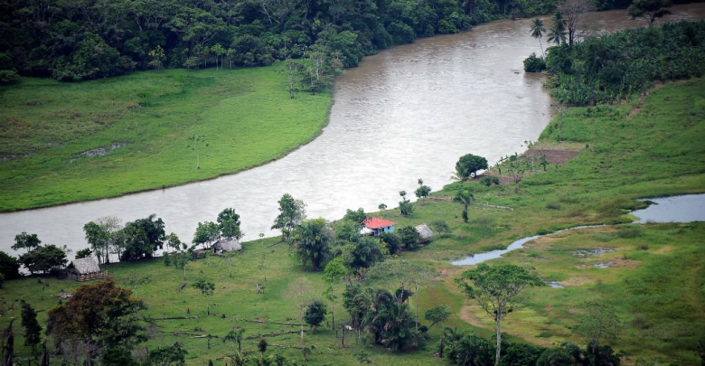 *الصورة: منظر جوي لنقطة حدودية تقع بين كوستاريكا ونيكاراغوا على نهر سان خوان