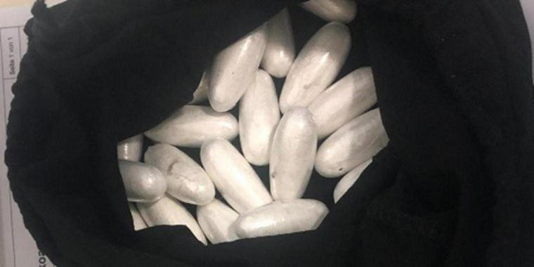 واعترف الرجل في وقت لاحق بأنه ابتلع أكياس الكوكايين لنقلها.