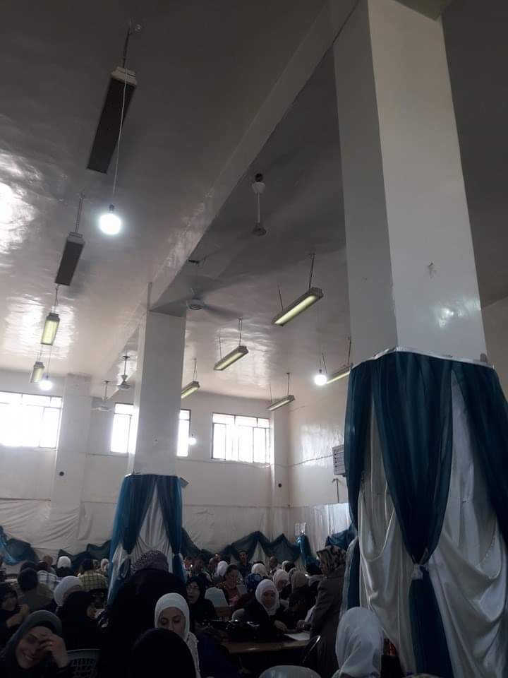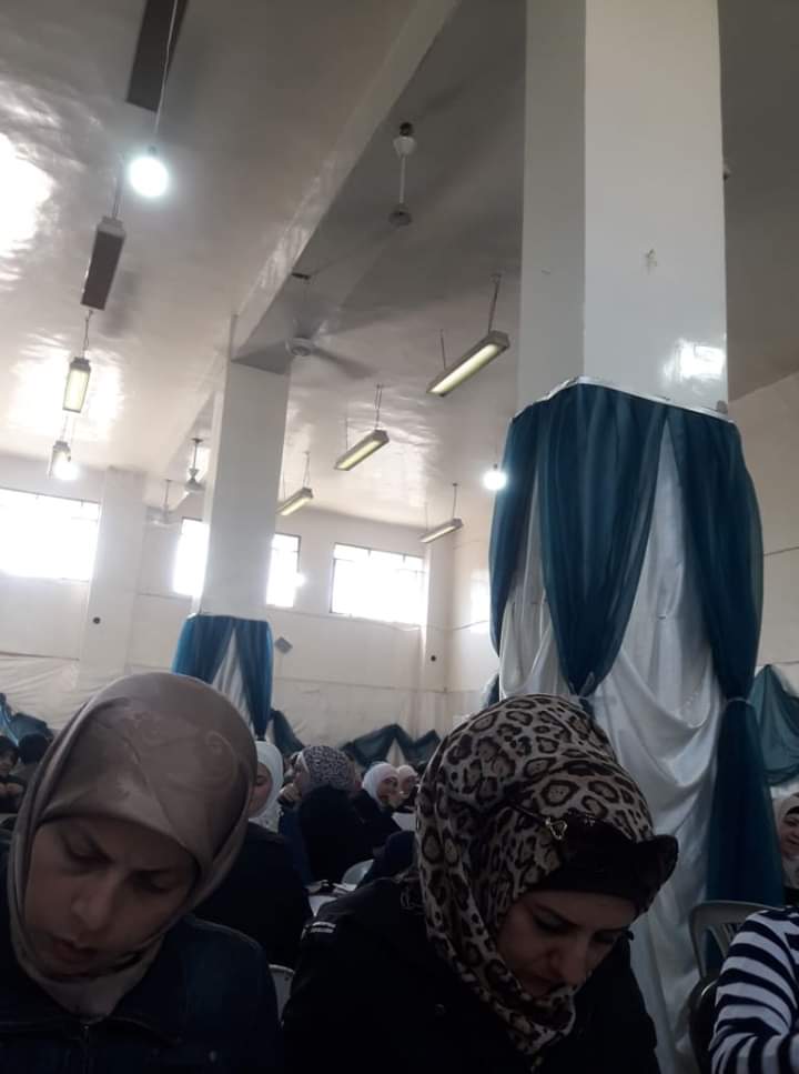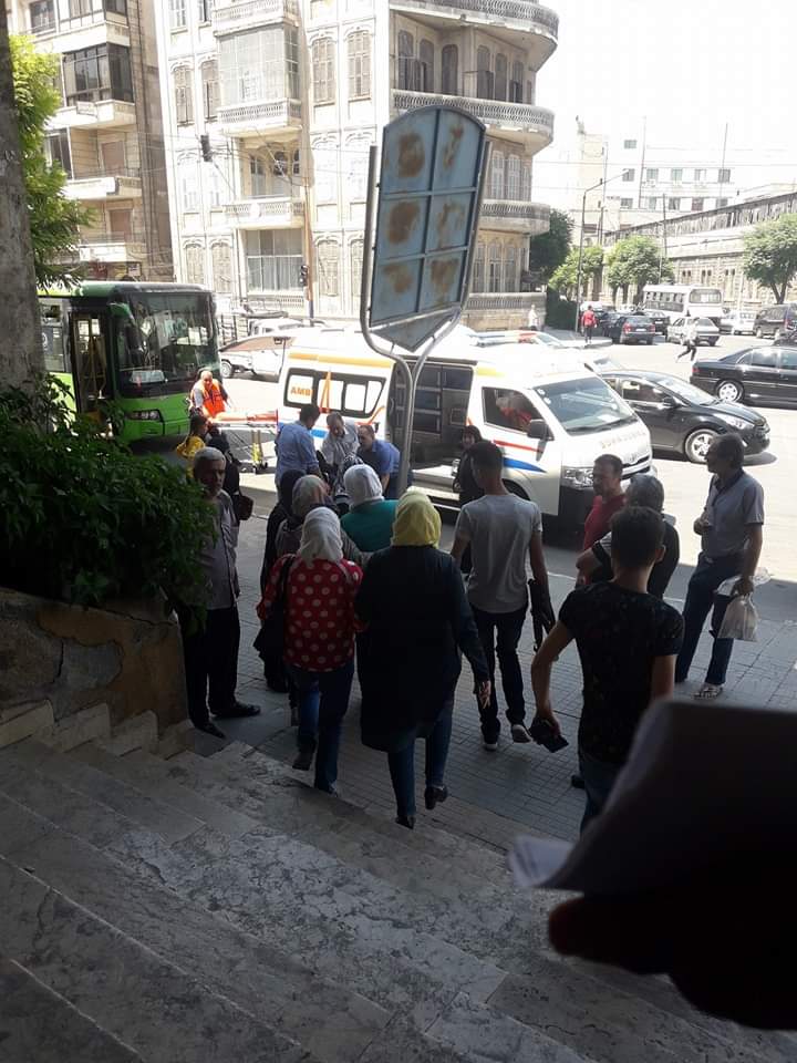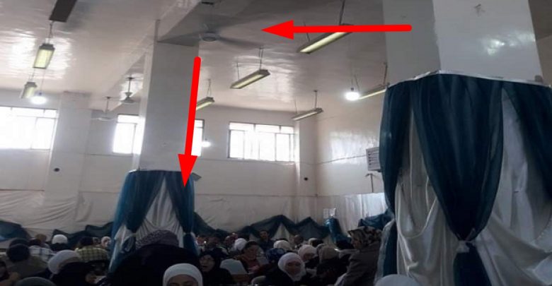 قالت وسائل إعلام موالية، الثلاثاء، إن “مروحة سقف سقطت على رؤوس المعلمات في قاعة مكتظة، أثناء تصحيح أوراق الامتحانات في مبنى معهد الفنون بحلب”.
