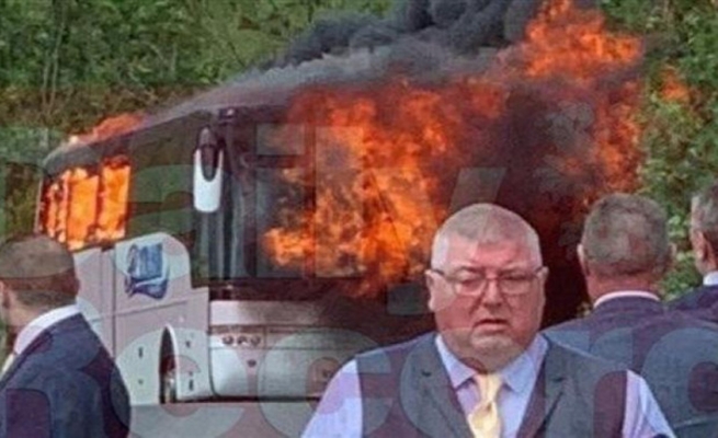 اضطر المدعوون إلى حفل زفاف في بريطانيا للنجاة بحياتهم من الحافلة التي كانت تقلهم إلى الحفل، بعد أن اندلعت فيها النيران.