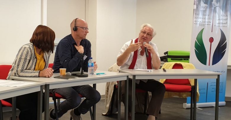 ونقلت عن رئيسها علي عيد قوله، في افتتاح الفعالية، إن الهدف من الأخيرة هو “فتح النقاش حول إعادة تفعيل الخبر السوري في وسائل الإعلام العالمية، وأدعو للبحث عن زوايا جديدة في التغطيات أمام انحسار الاهتمام في الشأن السوري لدى وسائل الإعلام الغربية، والمتلقيين الغربيين، ولذلك كان لا بد من جمع الصحافيين السوريين بنظرائهم الغربيين لجسر الهوة”.