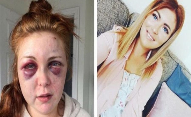 نشرت السيدة جينا هيرلي التي تعيش بمقاطعة لانكشاير الإنكليزية صورا مروعة لها بعد تعرضها لإعتداء مميت بالضرب من قبل حبيبها السابق.