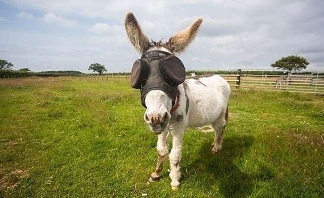 حصل على حمار على نظارات تساعده على النظر، بعد تعرضه لحادث غريب في حقل.