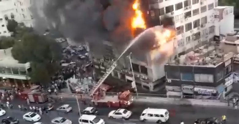اندلاع حريق في ” برج دمشق ” ( فيديو )