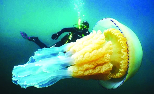 غواص بريطاني يلتقي قنديل بحر عملاق