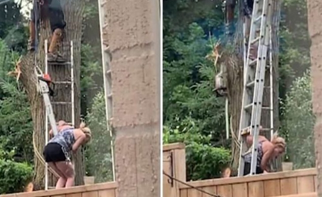 وبحسب صحيفة “القدس العربي”، يمكن من خلال الفيديو رؤية اللحظة التي وقع فيها كل من المنشار وجذع الشجرة في الوقت نفسه على الأرض، إذ كاد المنشار يرتطم بالمرأة التي كانت قد صعدت السلم لمساعدة العامل الذي يقوم بعملية التقليم، وقد أدى ذلك الى وقوع المرأة.
