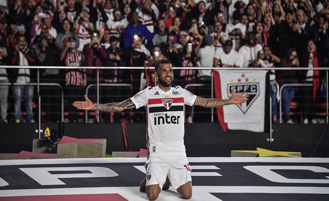 قدم نادي ساو باولو البرازيلي لاعبه الجديد الظهير #داني_ألفيش نجم كرة القدم البرازيلية في احتفال أسطوري على إستاد مورومبي.