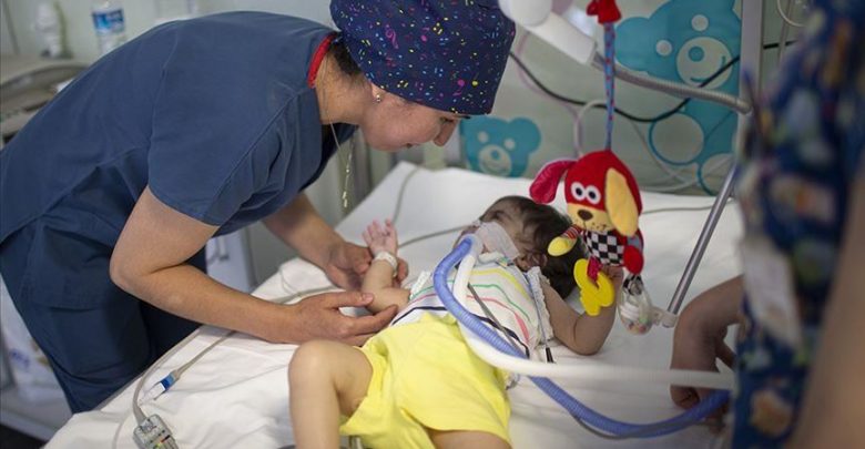 وأجريت سلسلة عمليات للرضيعة السورية، من أجل تأمين الاتصال بين المريء والمعدة، في حين لم يكن أحد من أسرتها إلى جانبها. (ANADOLU)