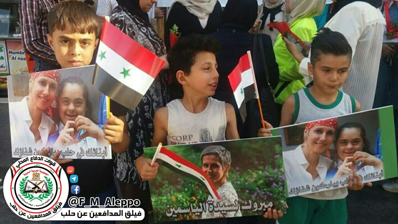 موالون في حلب يحتفلون بانتصار بشار و زوجته على الإرهاب و السرطان ! ( صور )