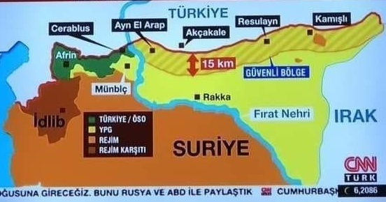 المضحك في الخريطة انها غير واقعية و مضلله فعمق ٢٠ ميل يعني حوالي ٣٠ كم و هو في علم الخرائط خط عريض أو مزدوج لا يكاد يرى، أما عن امكانية اعادة توطين السوريين الهاربين من النظام الفاشي المجرم و اذرعه كا ل بي كي كي و غيرها في هذا الشريط الحدودي فهو ضرب من الخيال فهناك اربعة ملايين سوري لكي يتم تنفيذ الأمر لابد من توزيعهم في قرى صغيرة متفرة كل منها لا يتجاوز عدد سكانه الخمسة آلالاف.