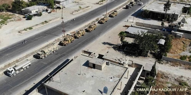 أول رد نظامي على دخول رتل عسكري تركي ضخم و توجهه صوب خان شيخون ( فيديو )