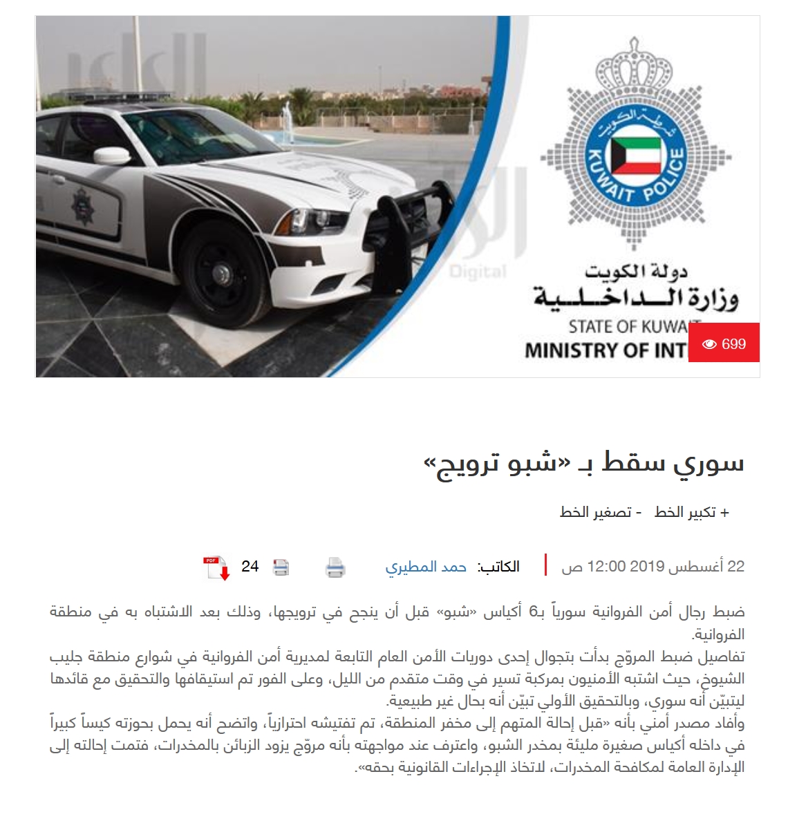 القبض على ” مروج مخدرات سوري ” في الكويت