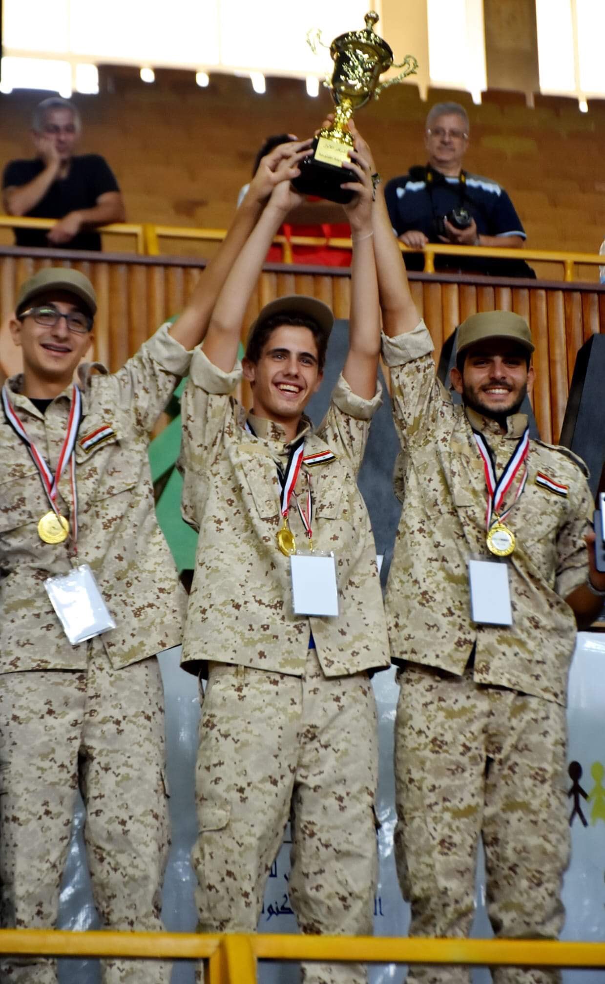 ونشر الإعلام الموالي أسماء الفرق الفائزة (فلاي باك- سيريان مايندز- إيرر 403- روبكس- سوا- روبونوتس)، وظهر بين المكرمين وحاملي الكوؤس، كريم الأسد وهو يرتدي -مع عناصر فريقه- لباساً عسكرياً.
