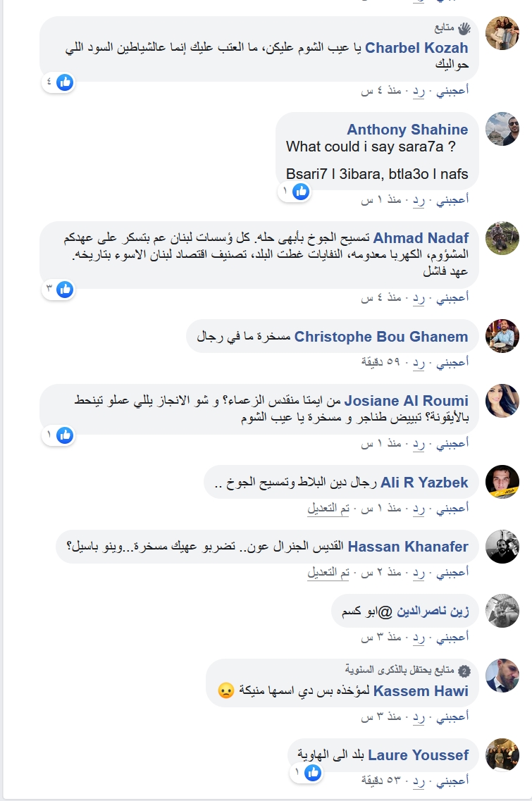 عبر لبنانيون عن سخريتهم وسخطهم بعد نشر حساب الرئاسة اللبنانية عبر فيسبوك، صورة للرئيس اللبناني ميشال عون قدمت له خلال قداس شارك به، تظهر مريم العذراء وهي تحتضنه مع المسيح.