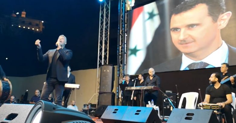 نشرت مصادر إعلامية موالية مقطعاً مصوراً للفنان اللبناني فارس كرم وهو يغني لبشار الأسد وجيشه في “مهرجان صيدنايا السياحي”.