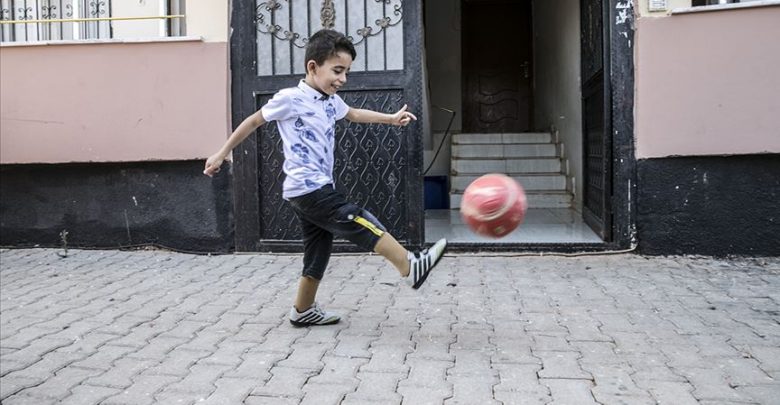 الطفل السوري الذي فقد والده جراء الغارات الجوية للنظام السوري بإدلب، يعيش حاليًا سعادة كبيرة، حيث أصبح قادرًا على مشاركة زملائه في لعب كرة القدم والمشي بسهولة.