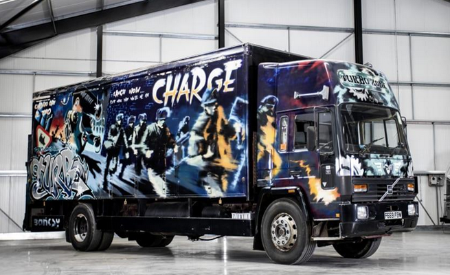 وبحسب دار المزادات “بونهامز”، تُعد شاحنة “فولفو”، من طراز FL6 لعام 1988، بمثابة “أكبر عمل فني لبانكسي”، إذ تبلغ المساحة المطلية على سطح الشاحنة 80 متراً مربعاً.