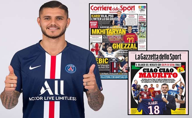 هذا وتصدر اسم إيكاردي الصفحة الرئيسية لصحيفة “لاغازيتا ديللو سبورت” الإيطالية، حيث كتبت عنواناً : “وداعاً وداعاً موريتو”، مرفقة عبارة :” الإنتر أعار لباريس سان جيرمان مشكلة و ليس لاعباً” .